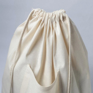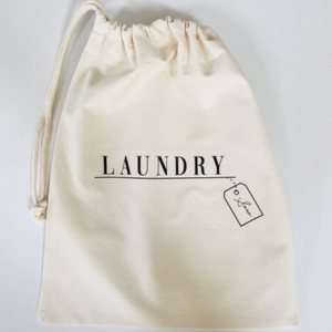 Large enough to fit all the dirty laundry with a drawstring top (also made of cotton) to ensure nothing falls off the bag. You can choose to have your logo embroidered on the bag, with a minimum order quantity.