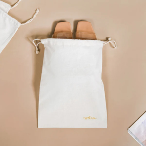 This shoe bag is 100% made of cotton, a fully compostable material so that the disposal causes no harm to the environment.